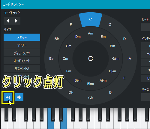 一小節分の コードが作成されます。(初期状態はCコードが選択されています)